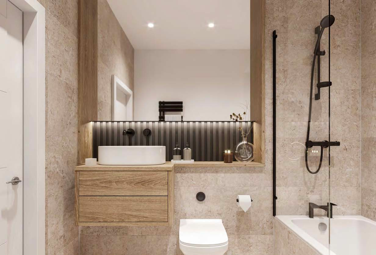 Residents benefit from premium on-site facilities, including a fully equipped gym, landscaped communal gardens, and convenient on-site shops.